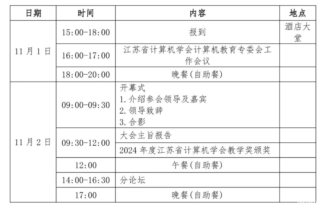 会议期间将召开江苏省教育专委会工作会议,请所有专委会委员届时出席。尚未成为教育专委会的江苏省计算机学会会员,若希望增补为教育专委会委员,请填写教育专委会委员申请表,并在10月15日之前发送至指定邮箱jscs@nju.edu.cn。(申请表下载请点击附件下载)