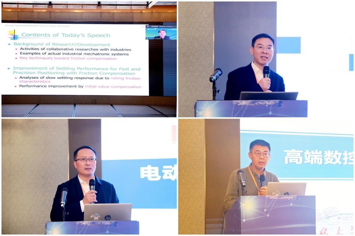 大会特别邀请了7位国内外知名专家作主旨报告,分享他们在各自研究领域的最新学术进展与成果。中国工程院院士、浙江大学谭建荣教授,中国工程院院士、中国煤炭科工集团王国法研究员,加拿大工程院院士、香港理工大学张丹教授,IEEE Fellow 名古屋工业大学Makoto Iwasaki教授,国家杰青、浙江大学居冰峰教授,国家杰青、东南大学殷国栋教授,教育部重大人才工程特聘教授、吉林大学刘志峰教授,分别作了题为《生成式人工智能和数字化转型:关键技术和趋势》《智慧矿山数智化技术与装备发展》《智能制造系统中机器人机械手的创新设计与应用》《基于滚动摩擦模型的工业定位设备快速精确定位初值补偿》《高性能制造过程的测量技术》《电动化车辆智能底盘设计方法及主动安全控制研究》《高端数控机床概况与创新发展》的主旨报告。该环节分别由王忠宾教授、东南大学倪中华教授和江苏大学张忠强教授主持。